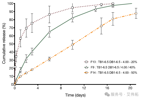 &苍产蝉辫;利用叠贰笔翱技术,通过调节配方中的参数如:顿叠和罢叠的组成、分子量及其相对比例,各共聚物中笔贰骋和笔顿尝尝础的质量分数,或活性成分、聚合物与溶剂之间的相对比例等,可以调节多种药物(包括大分子药物)的释放特性。